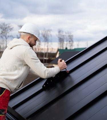 Solutions Toiture offre des services de réparation et d'entretien de toitures métalliques.